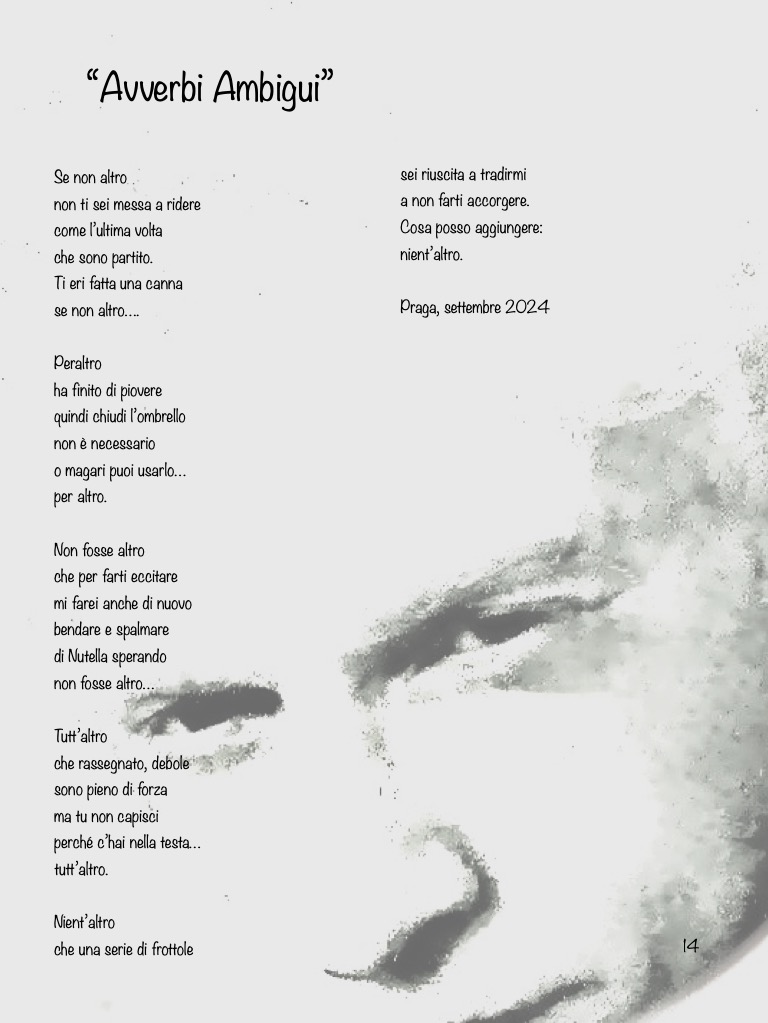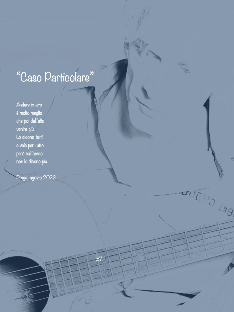 Cantare si può dire che sia il mio lavoro e scrivere canzoni é la pratica artistica che probabilmente più mi si addice ma la poesia é sempre stato il mio vero amore segreto, sin dall’adolescenza … Composizioni ironiche e altre più introspettive, aforismi, sonetti e piccoli pensieri finalmente raccolti, dopo un ventennio, in un lavoro editoriale che quasi riassume la mia vita sino ad ora. Ho cercato di trasportare nella poesia l’innata sensibilità e il senso ritmico che sono tipici delle mie canzoni. Il mio stile, le mie rime o le mie assonanze, pur curate, tendono a privilegiare l’intento comunicativo rispetto a manie di finitezza metrica e scolastica letteraria. Non me ne vogliano i puristi della scolastica letteraria ma quando rileggo i miei lavori, sono il trasporto emozionale e la fluidità dei versi le mie priorità per qualificarlo; strappare al lettore un sorriso, una lacrima, una smorfia è l’obiettivo e non stupire gli accademici con artifici e ridondanze. Troverete in questa pagina solo alcune “pillole di poesia” peraltro non facenti parte del libro che invece potrete scaricare online (più info nella sessione News). Sono curioso di sapere che cosa ne pensate a proposito …